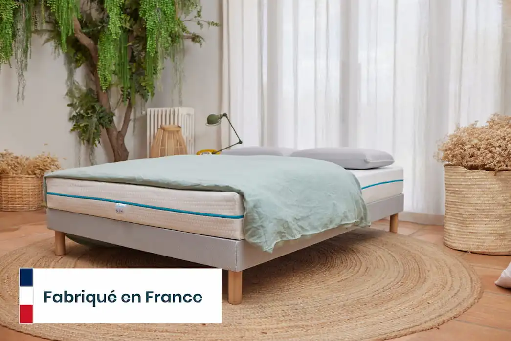 Matelas Latex + mousse haute densité, fabriqué et reconditionné en France.