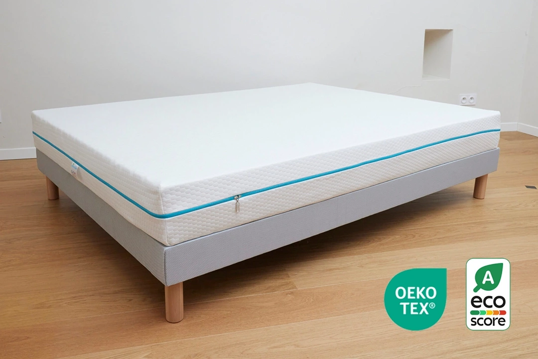 Matelas habillé d’une housse neuve, certifiée OEKO-TEX et hypoallergénique, garantie sans traitements chimiques